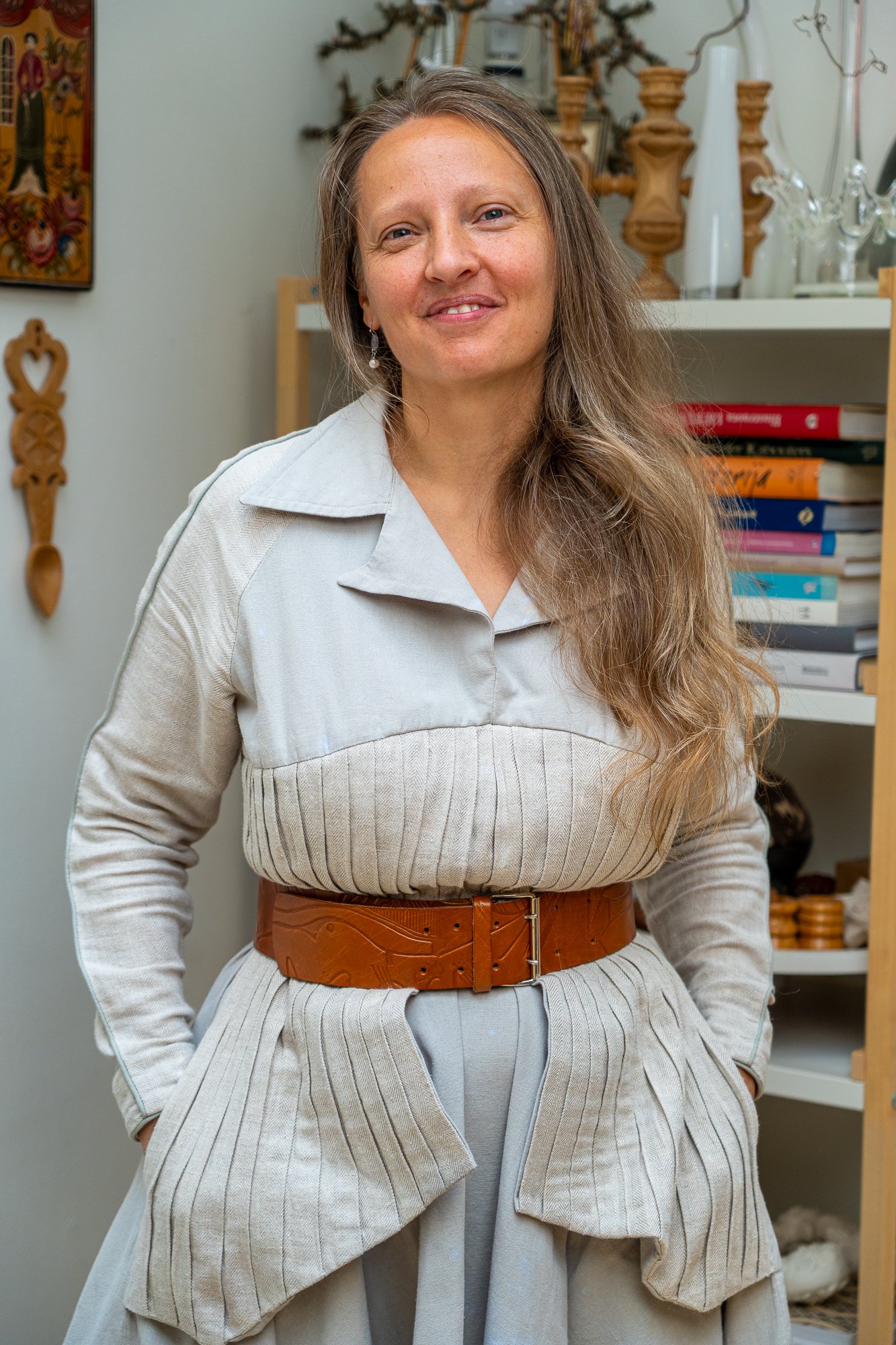 Her creative path has never been linear, but it has always been her own, finding her voice across many disciplines and combines inspiration from her experiences in furniture design, wedding decoration and being a seamstress into pieces that blend the sharp, clean lines of geometric esthetics with natural fluid shapes that evoke the essence of passionate fabric draping. She draws from the legacy of cubism, modernism, art deco—movements that speak of bold form and deep clarity. But above all, it’s the quality and technique that matter to her. She says: “It’s not about the style. It’s about the making.”